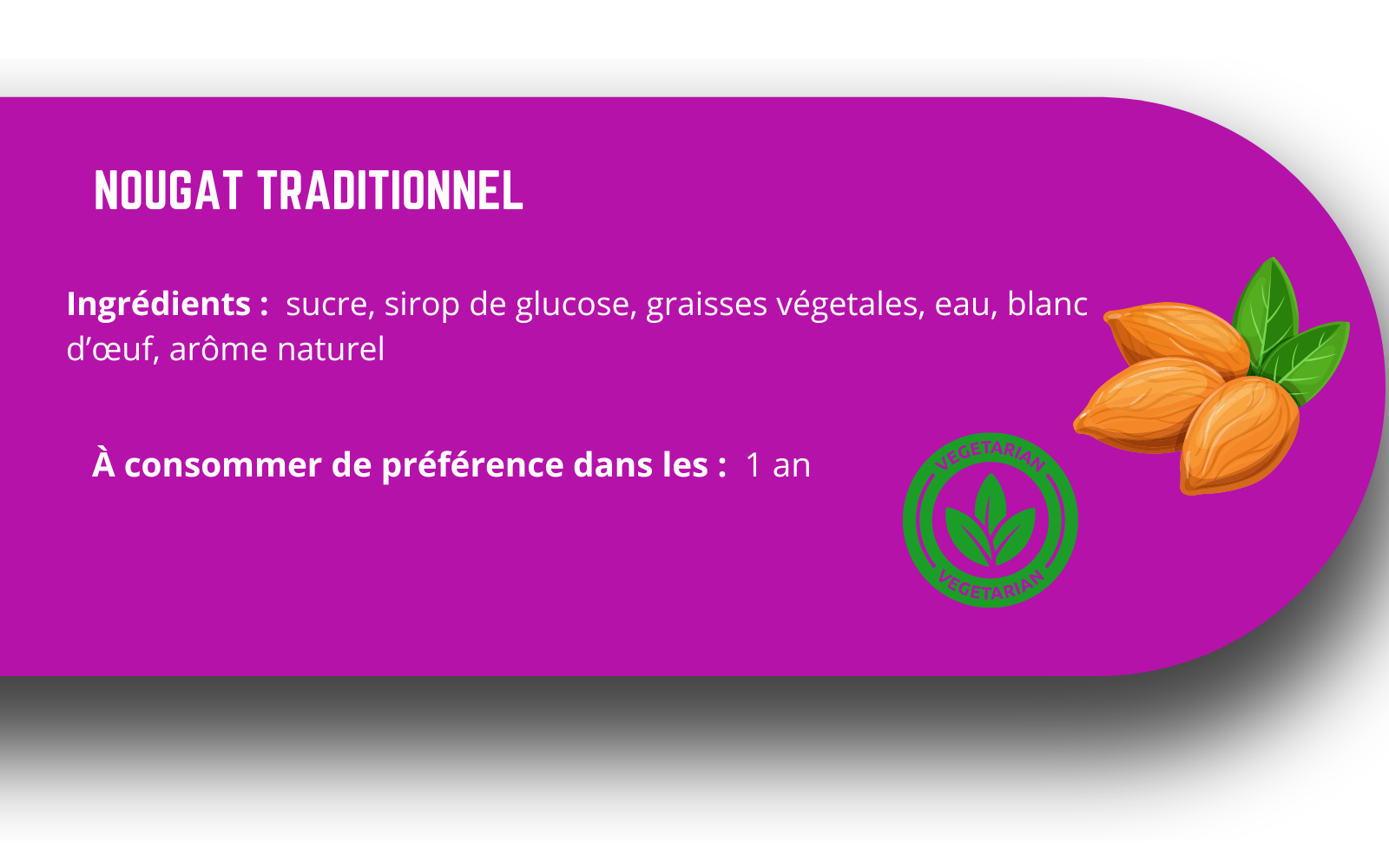 - Respect de la Tradition : Fidèles aux recettes d'antan, nos nougats sont préparés avec un soin méticuleux, garantissant une qualité irréprochable.