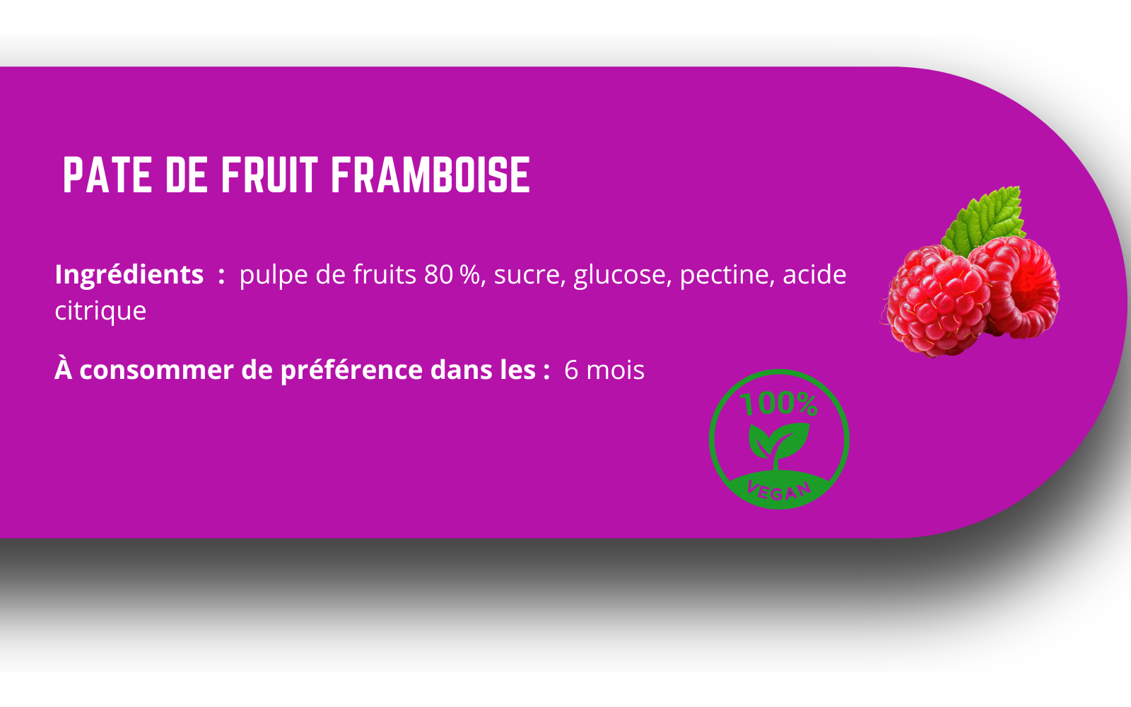 Offrez-vous le luxe simple d'une pâte de fruit à la framboise, ou partagez cette expérience avec vos proches. C'est le cadeau parfait pour les amateurs de saveurs authentiques et de confiseries artisanales, un geste gourmand qui dit "je pense à toi" avec douceur et affection.